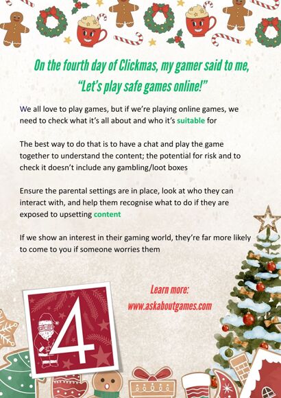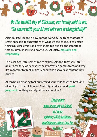 Below is the 12 days of Clickmas, a festive guide to online safety, supplied by Clennell Education Solutions.