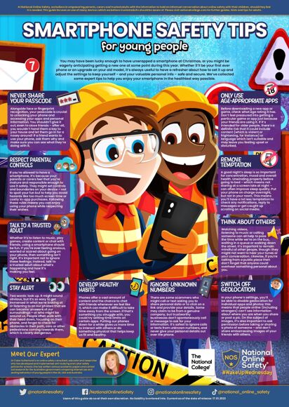 This week's information guide is on smartphone safety tips on the essential advice for children using smartphones responsibly, including passcodes, parental controls, screen time and scams.