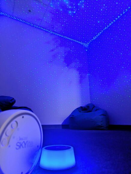 One of our newly established rooms focuses on the two senses of light and sound. This room is designed with a clear vision: to support our pupils' regulation using equipment and strategies that they can easily replicate at home. We believe that the tools and methods we teach should be affordable and accessible. Therefore, we have sourced our equipment online, ensuring that the items are not only effective but also available for purchase by families. This approach ensures that the strategies learned at school can be seamlessly continued at home and into adulthood.